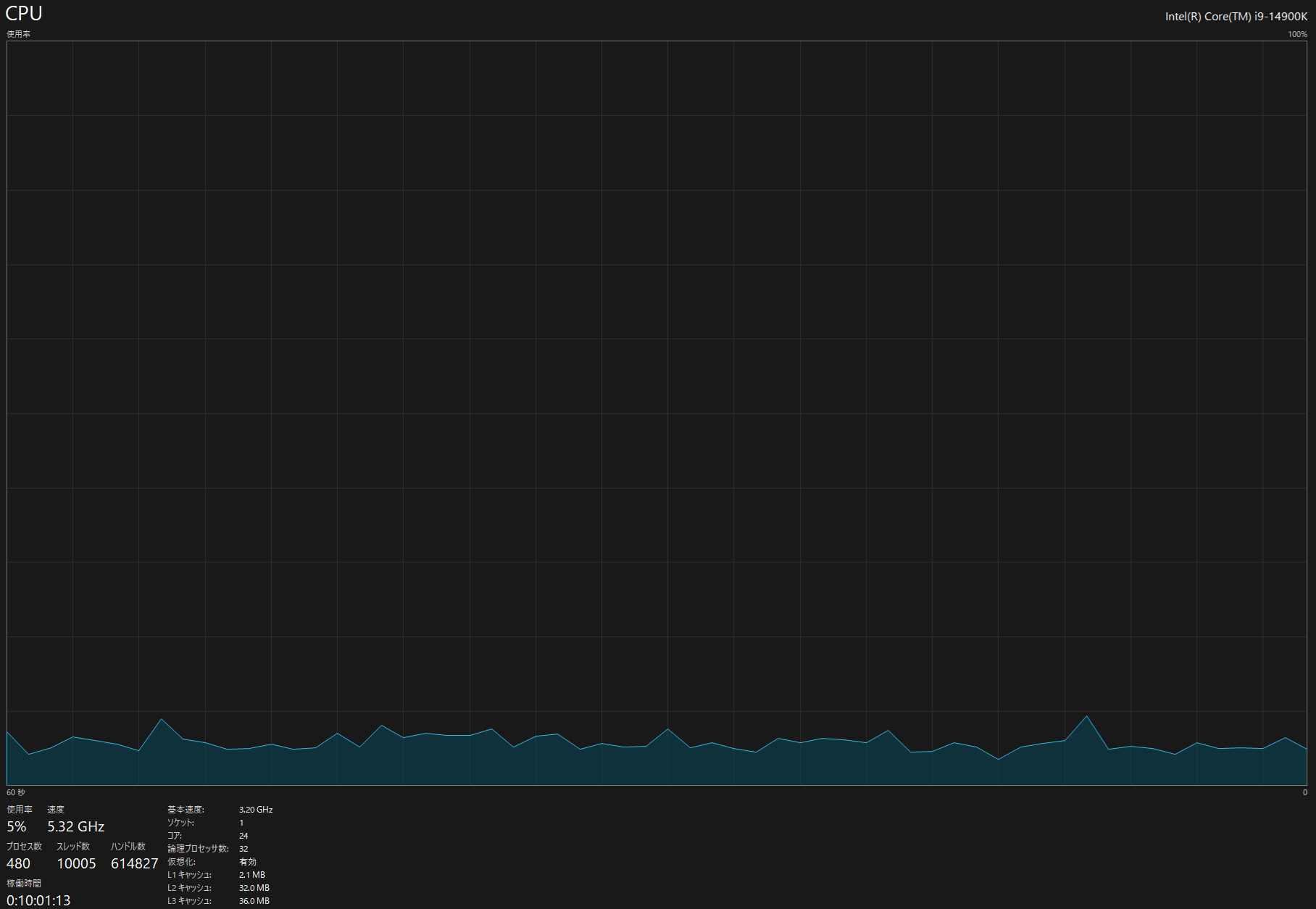 実機(Core i9-14900K + RTX 5070 Ti)でのCPU使用率実測値: