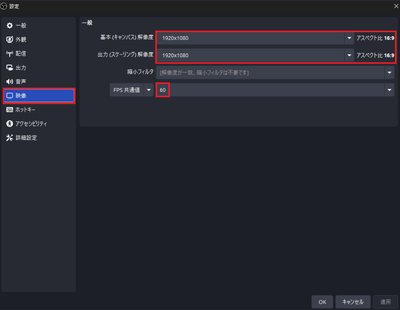 OBS配信設定の全般については「OBS配信設定おすすめガイド」も参照してほしい。