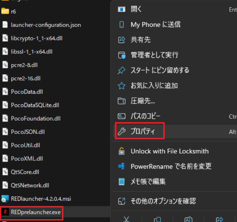 - ゲームの.exeファイルを右クリック → プロパティ